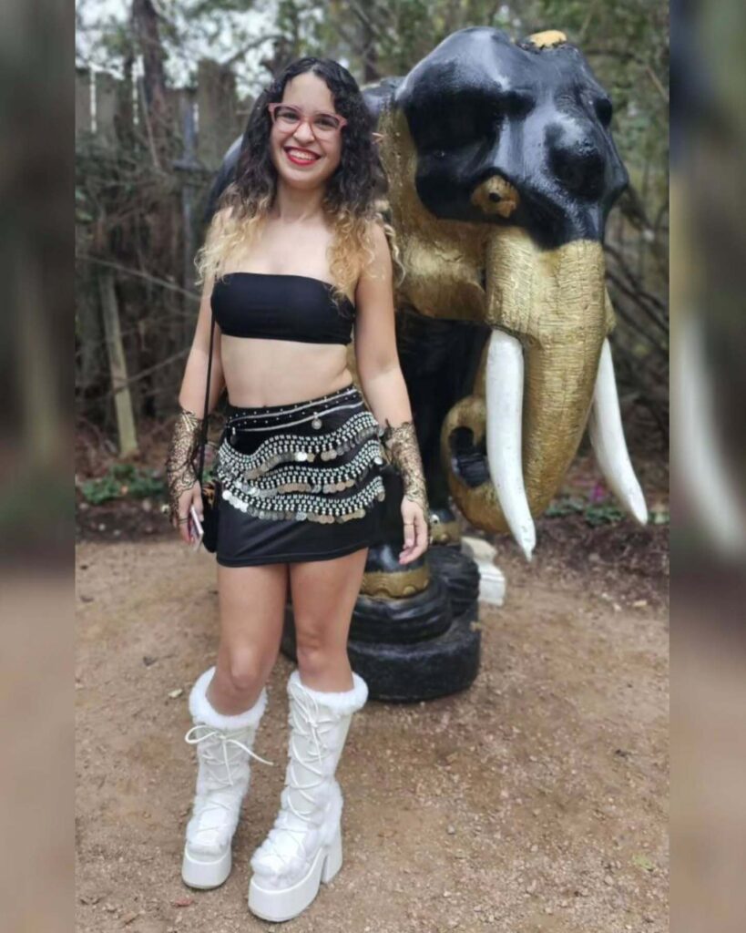 Belly Dance-Inspired Skirt with Fur Boots and Tube Top