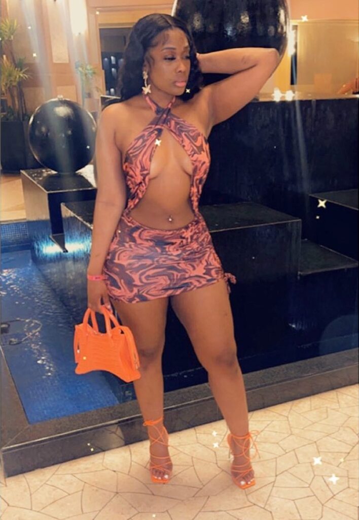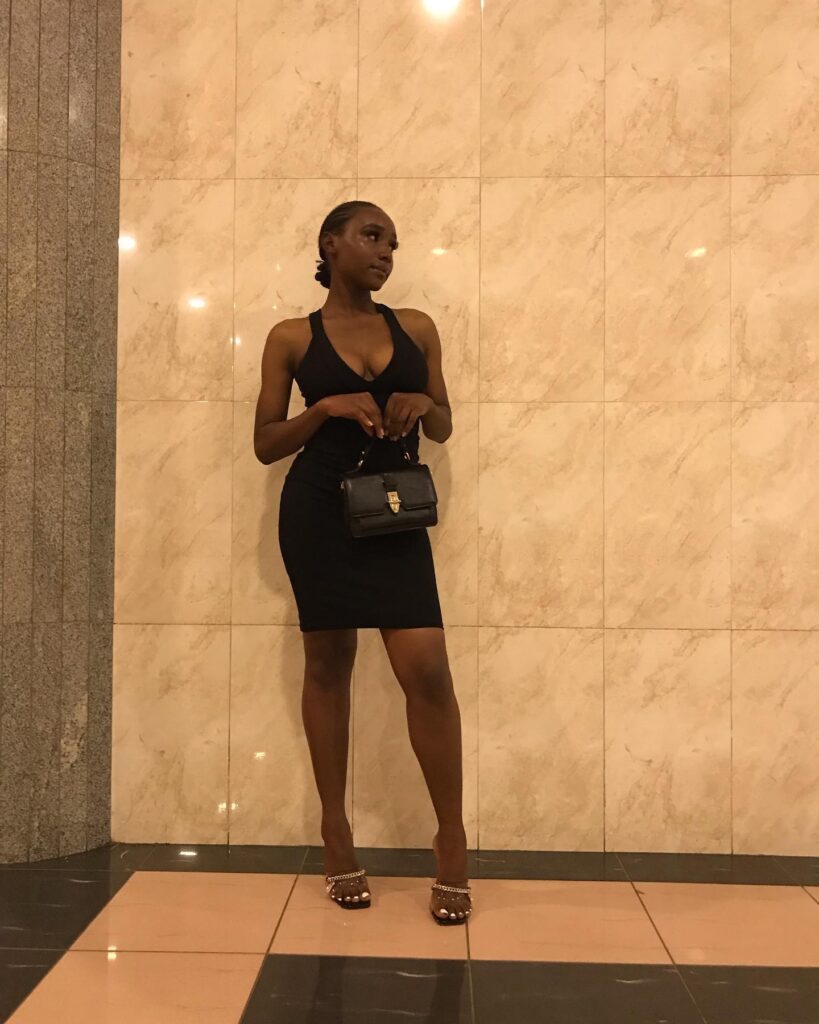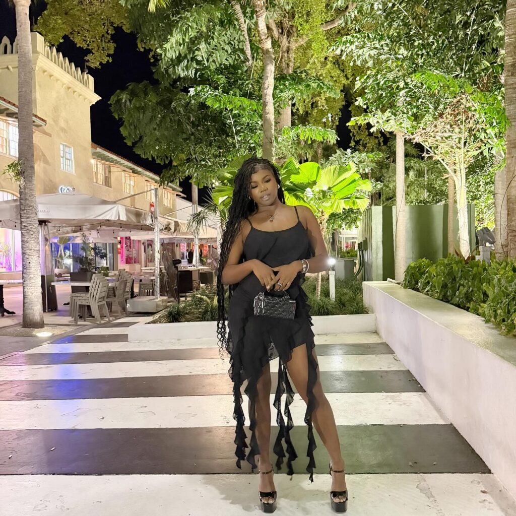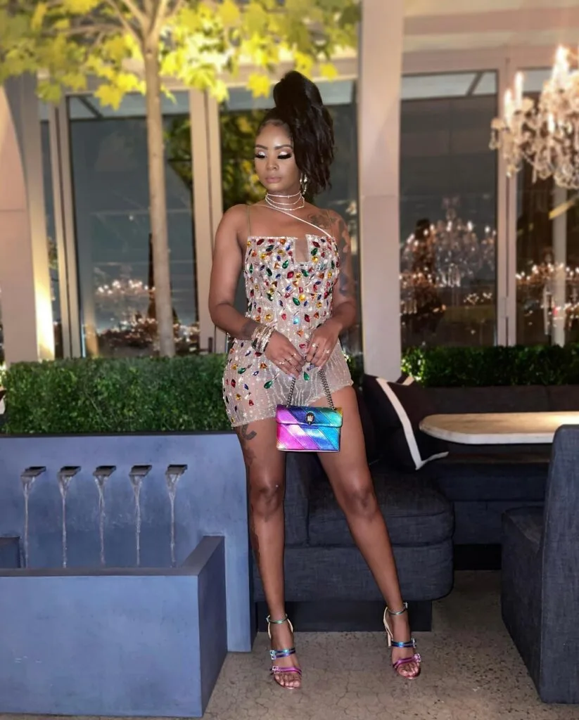 Styled with strappy heels and a chic round clutch, this ensemble embodies confidence, luxury, and unforgettable baddie energy.