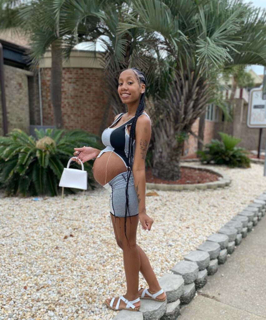 Styled with a straw cowgirl hat and chic sunglasses, it blends western flair with summer-ready glam. Perfect for lounging, beach days, or a sun-drenched getaway, this fit proves that a glowing bump and baddie style go hand in hand.