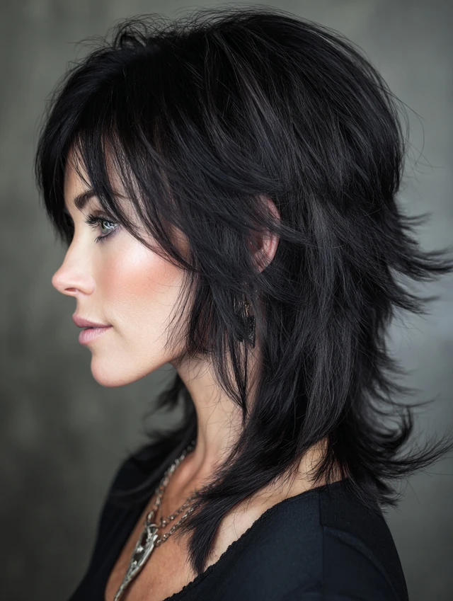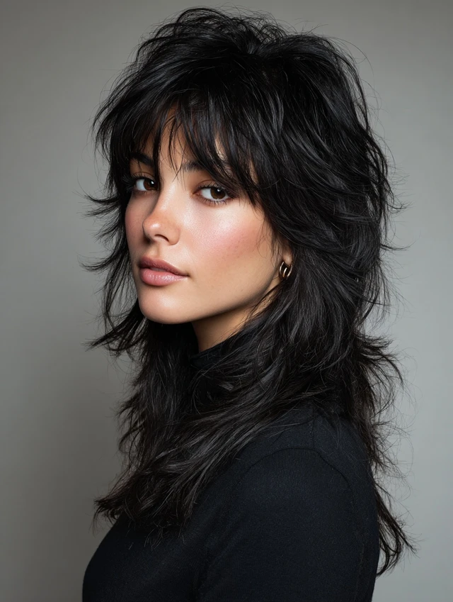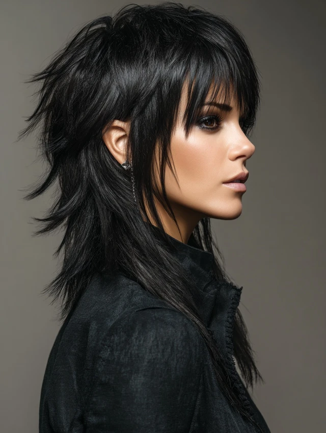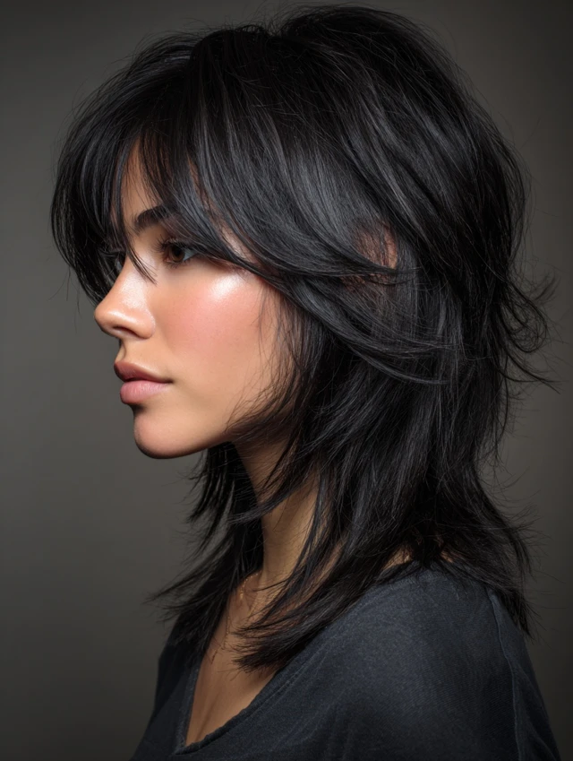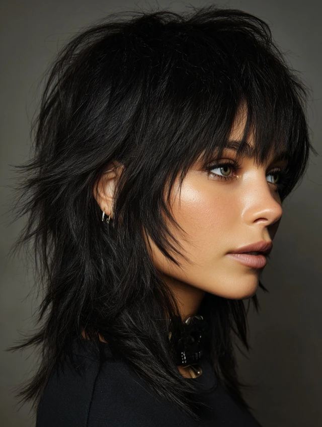 Black wolf haircuts work because the deep color enhances texture, movement, and edge. They suit multiple face shapes and hair types while remaining versatile for different lifestyles.