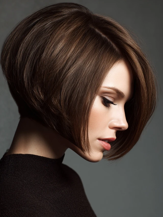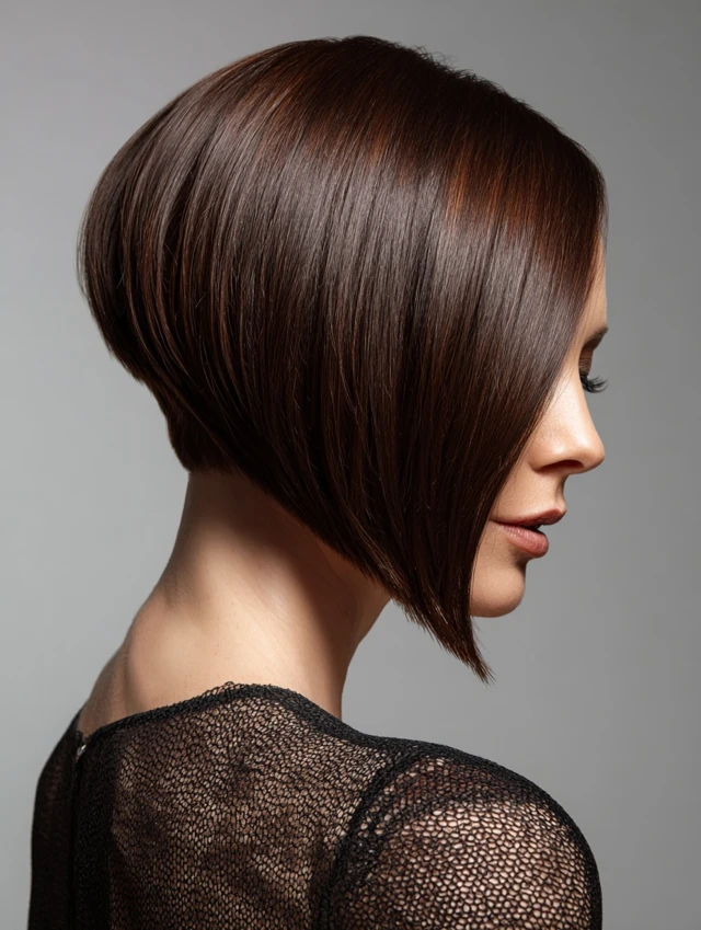 An angled bob is shorter at the back and gradually longer toward the front. The shape adds depth, dimension, and a modern edge to fine hair.