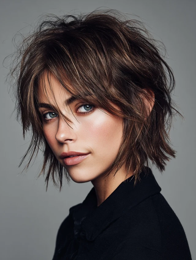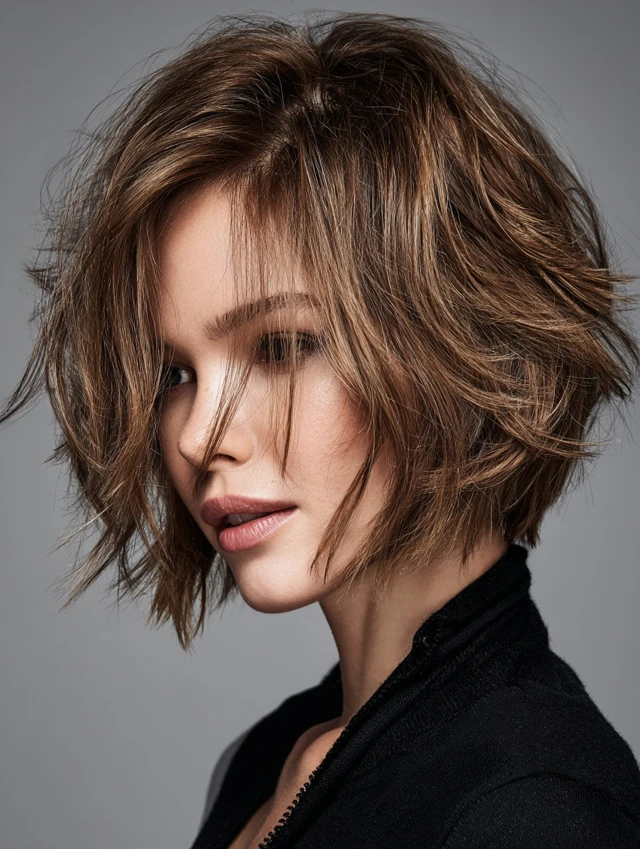 A choppy bob incorporates jagged layers and textured ends to create movement and fullness. It gives fine hair a trendy, modern appearance.