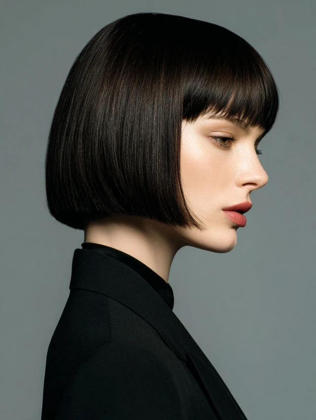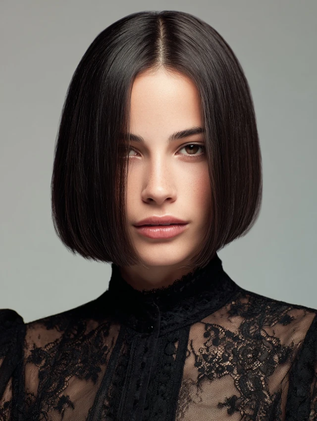 A classic blunt bob has even, straight-across ends that create the illusion of thicker hair. It adds weight at the tips, making fine hair appear fuller.