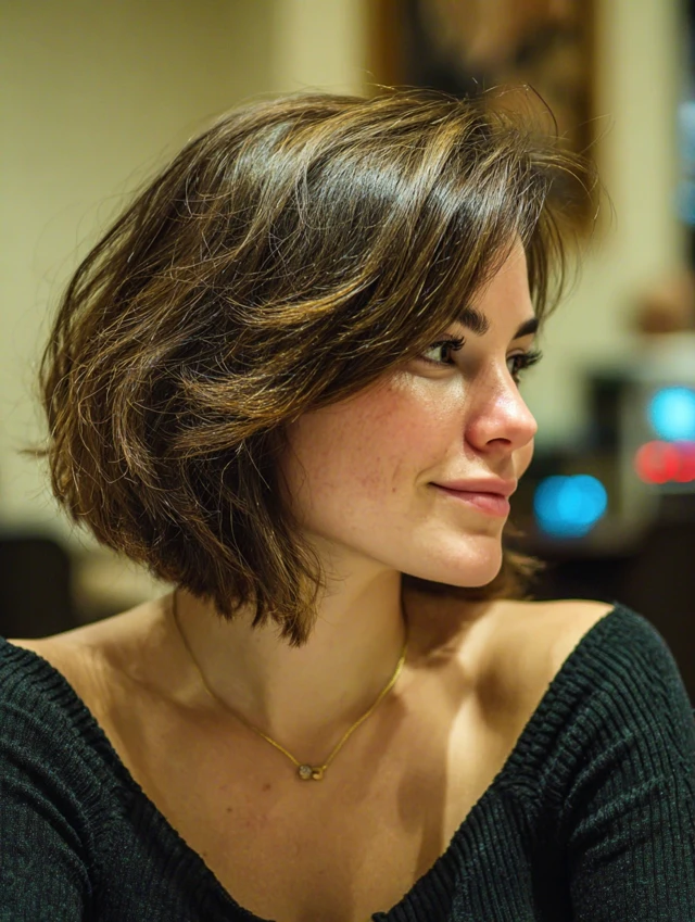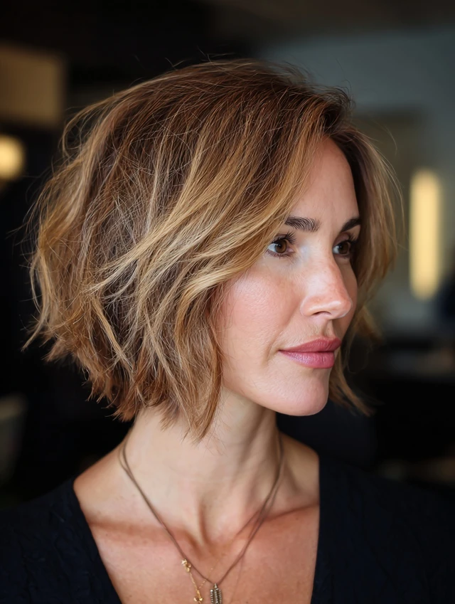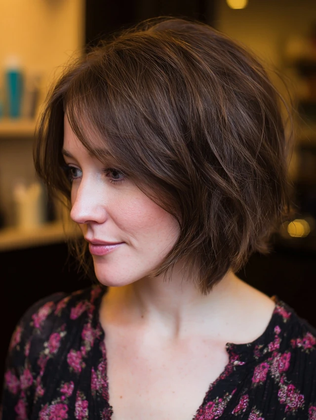 This style suits oval, round, and heart-shaped faces. Fine hair holds the bob shape naturally, and with minimal styling—such as a quick blow-dry, texturizing product, or soft waves—it can look full, modern, and effortlessly chic.