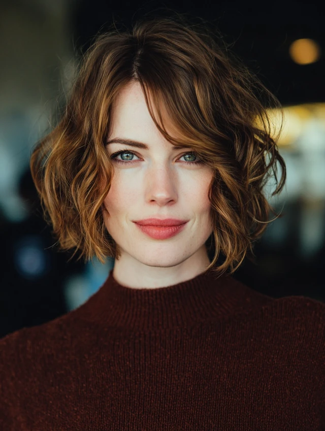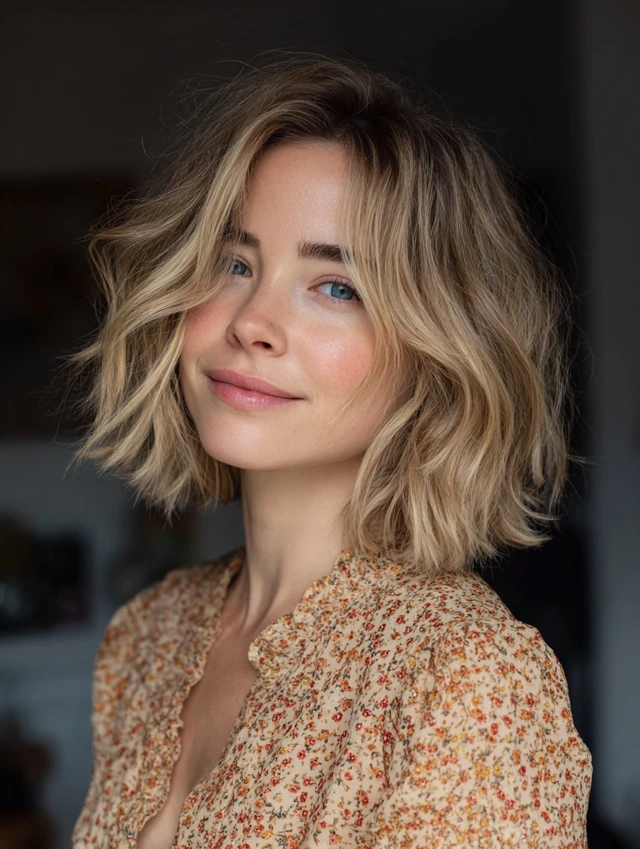 A wavy bob adds softness, bounce, and volume to fine hair. Loose waves give the illusion of fullness without heavy layers.