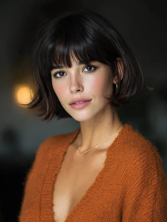 This cut suits round, oval, and heart-shaped faces. Best for fine to medium hair. Styling involves a quick blow-dry or flat iron to keep bangs smooth and layers defined.