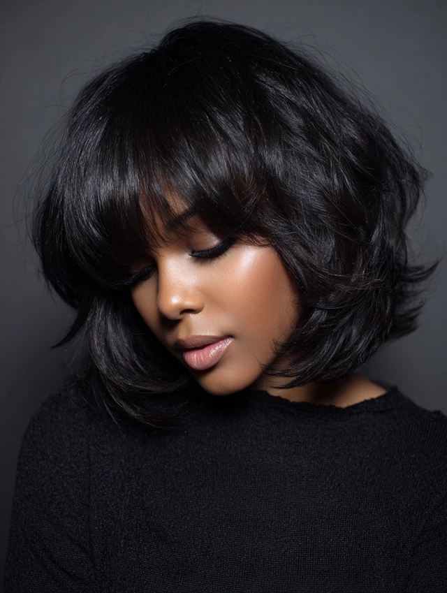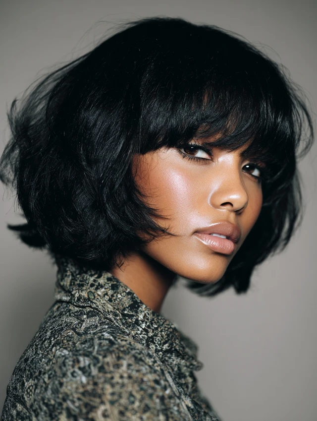 Chin-length bobs with bangs are versatile, flattering, and modern. They work well on straight, wavy, or curly textures and can be styled for casual, professional, or formal events. This hairstyle balances elegance with ease of maintenance.
