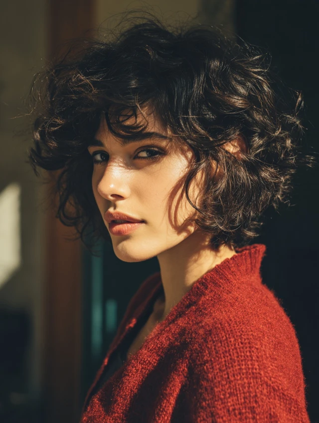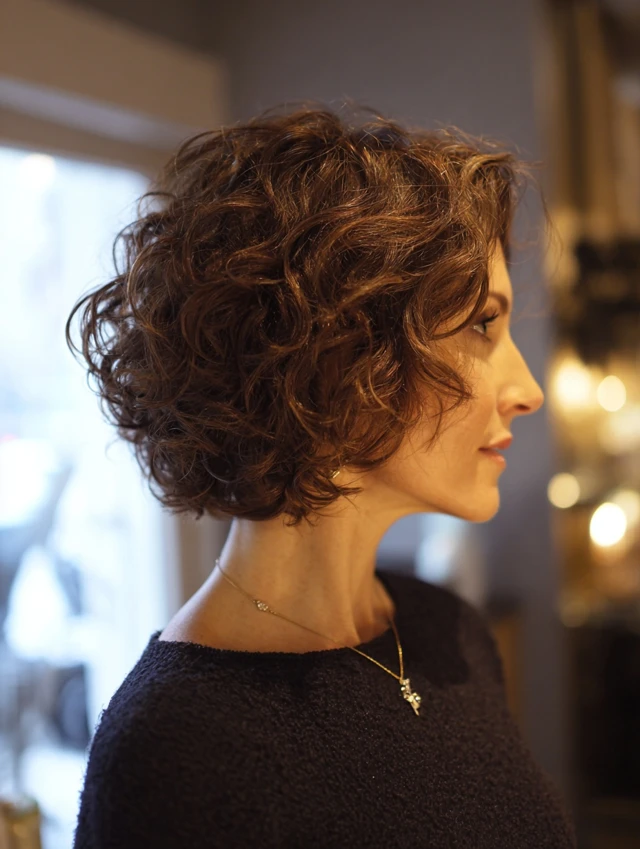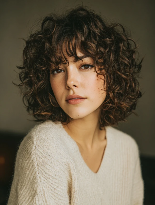 A curly choppy bob embraces natural texture, giving fine curls extra definition and volume. Layers prevent curls from looking heavy or limp at the ends.