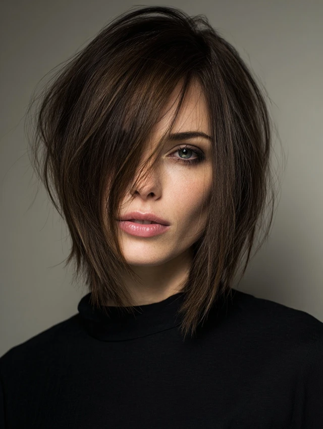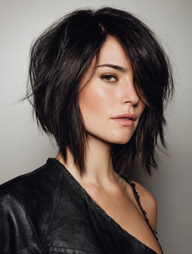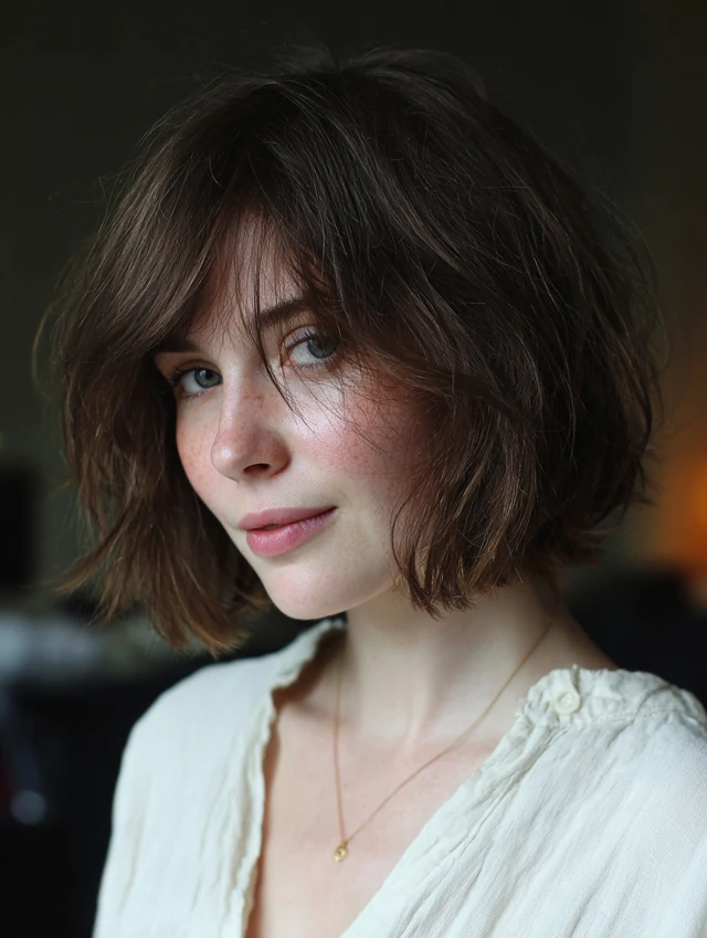 Layered choppy bobs with a side part add asymmetry and softness. Layers prevent flatness, while the side part enhances face framing and adds dimension.