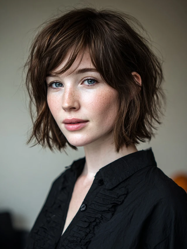 A blunt choppy bob blends straight, clean-cut ends with textured layers for a bold yet feminine look. It adds fullness while keeping hair manageable.