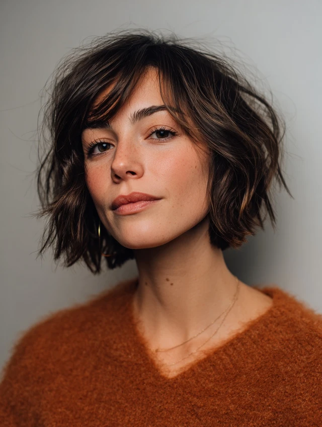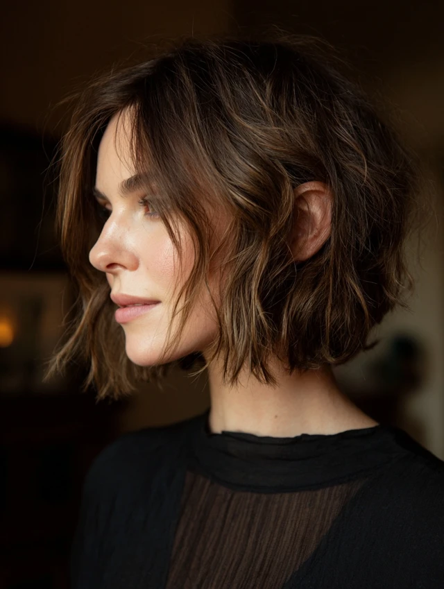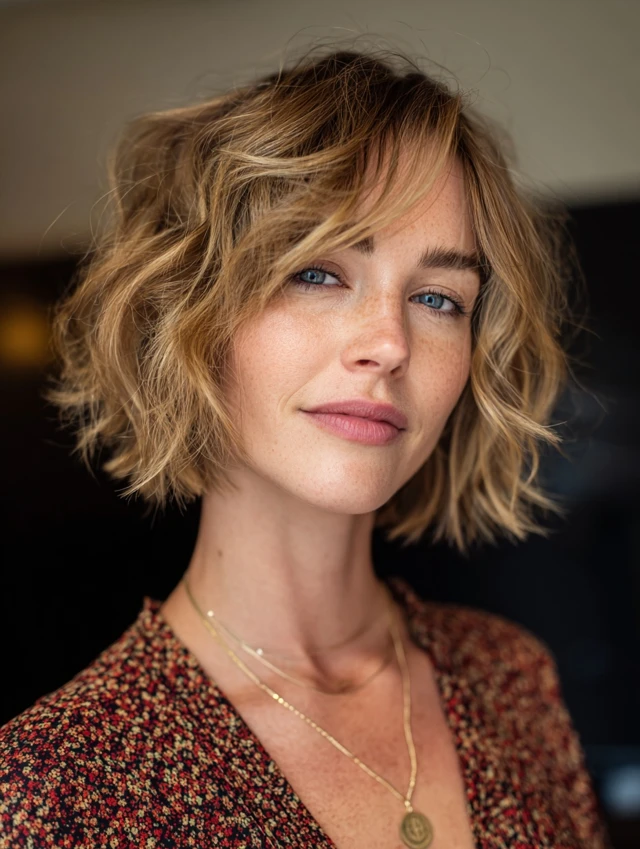 A wavy choppy bob combines loose waves with textured layers for extra fullness and movement. Waves enhance the choppy effect without weighing hair down.