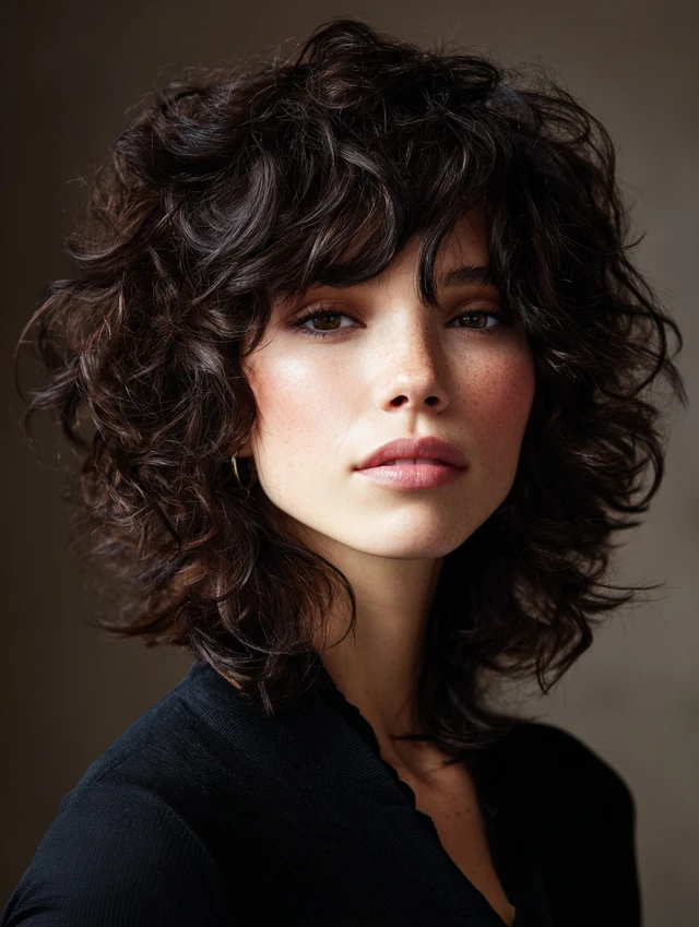 Curly Shag with Bangs