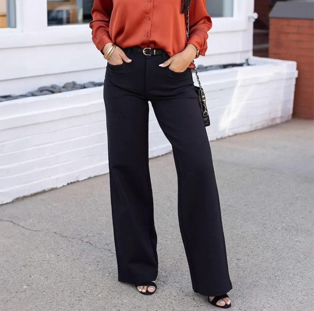 Try a wrap dress, a sleek jumpsuit, or a skirt paired with a silk blouse. Add low-heeled mules, ankle boots, or classic loafers for a neat finish.