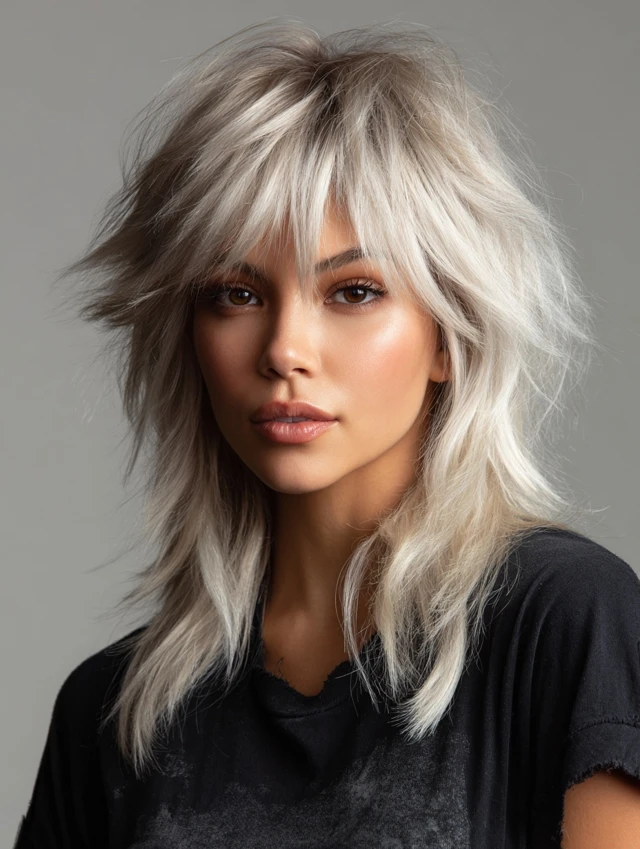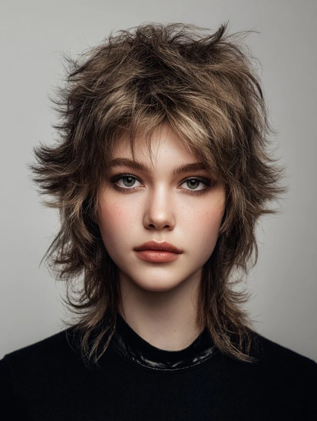 Textured fluffy wolf cuts emphasize jagged, uneven layers for a bold, modern look. Works well for medium to thick hair and oval, round, or square faces. Texture prevents flatness and adds dynamic movement.