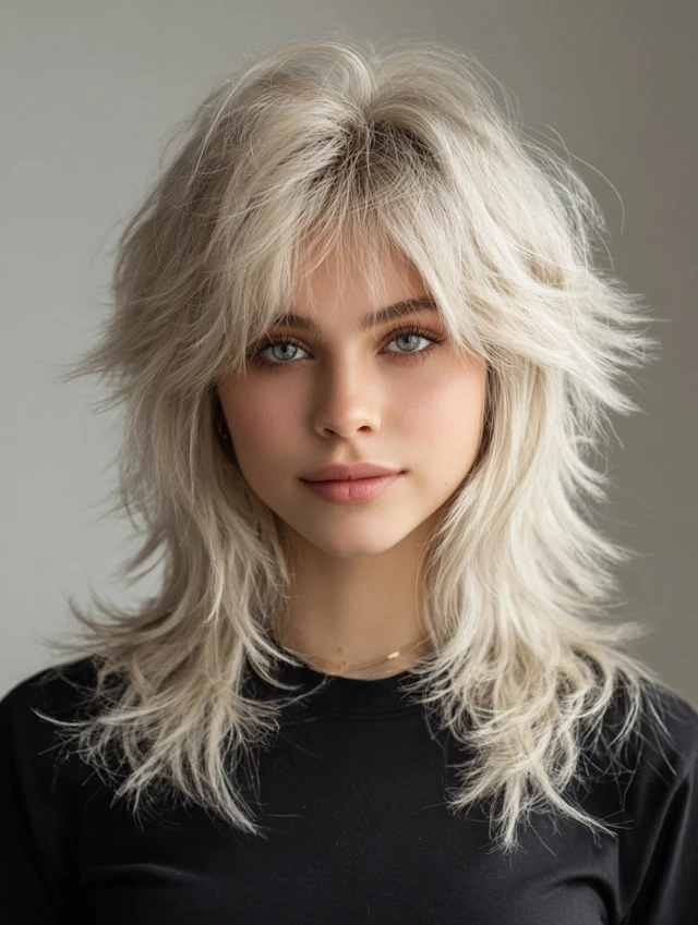Layered fluffy wolf cuts feature shorter crown layers with long jagged ends for playful texture. Works for oval and round faces, softening features while maintaining volume. Medium to thick hair responds best.