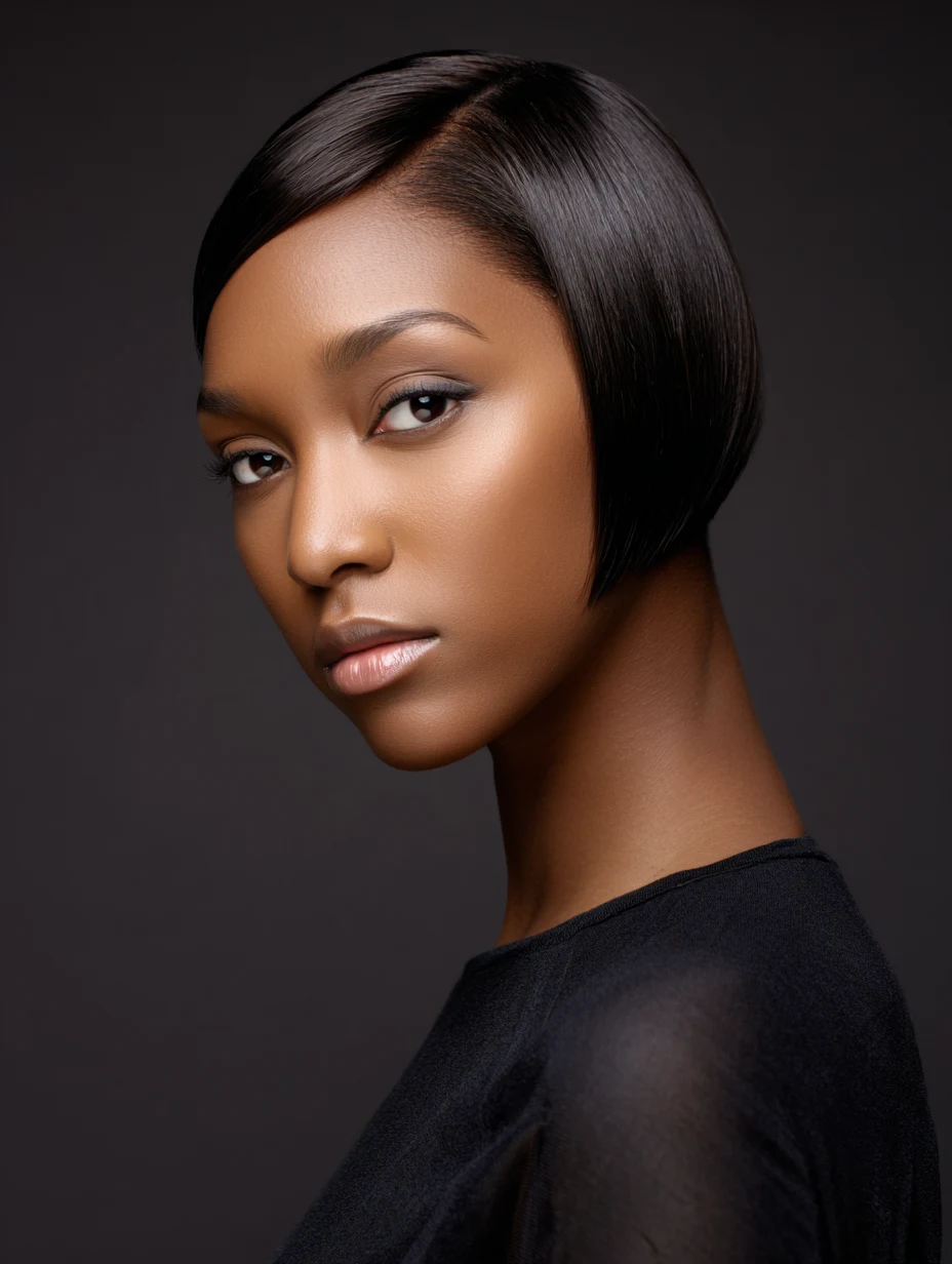 A sleek tucked bob creates a smooth, polished finish that flatters structured features and softens fuller cheeks. The tucked sides open your face, which works well with statement earrings or bold makeup.