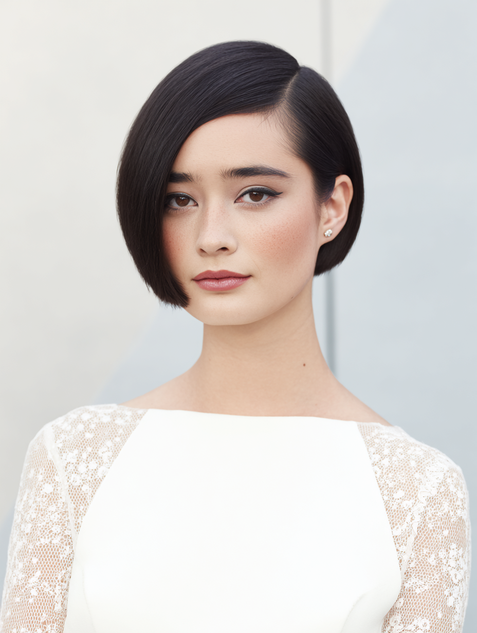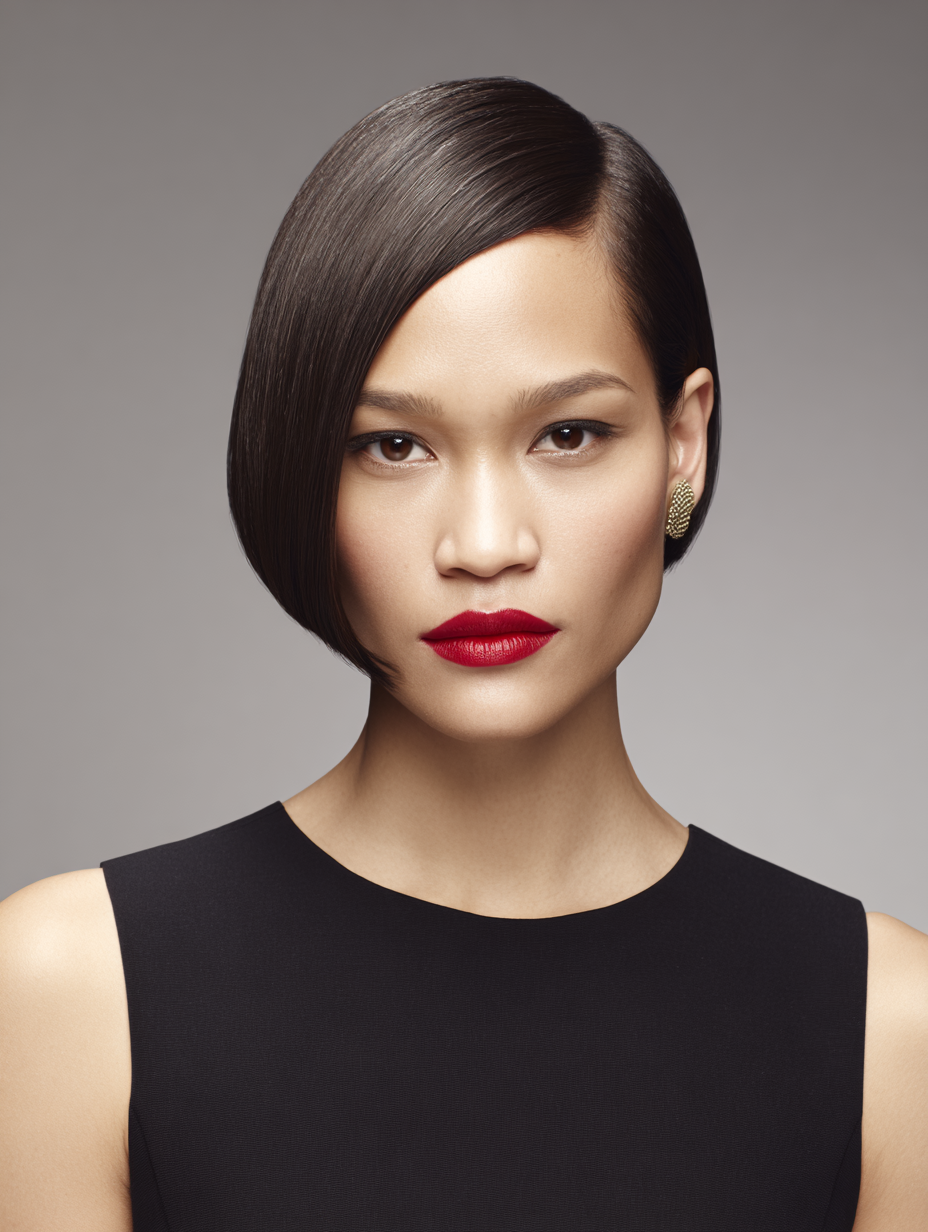 This style works well on short bobs, layered cuts, and thicker textures because the hair grips easily. The lifted shape flatters round and heart-shaped faces by adding height while keeping the sides sleek.