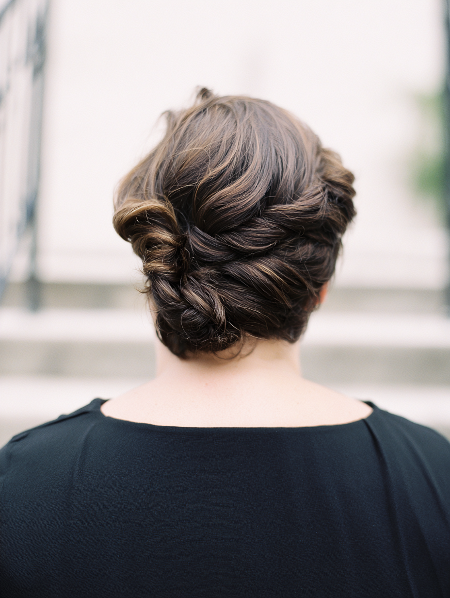 A short twist style mimics an updo without needing long hair. You pin the sides back to create lift and controlled elegance.