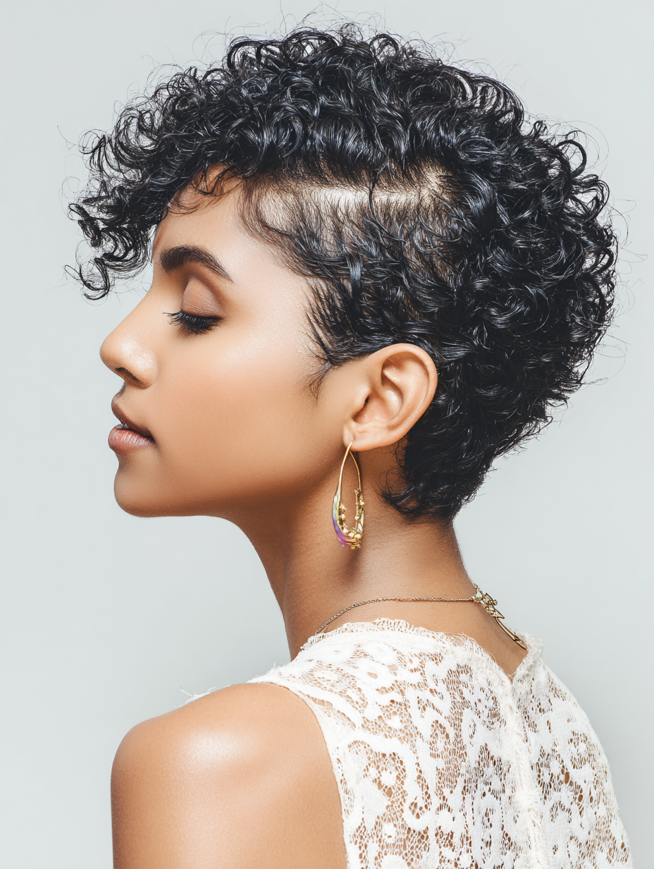 Side-Swept Curly Crop Hairstyle