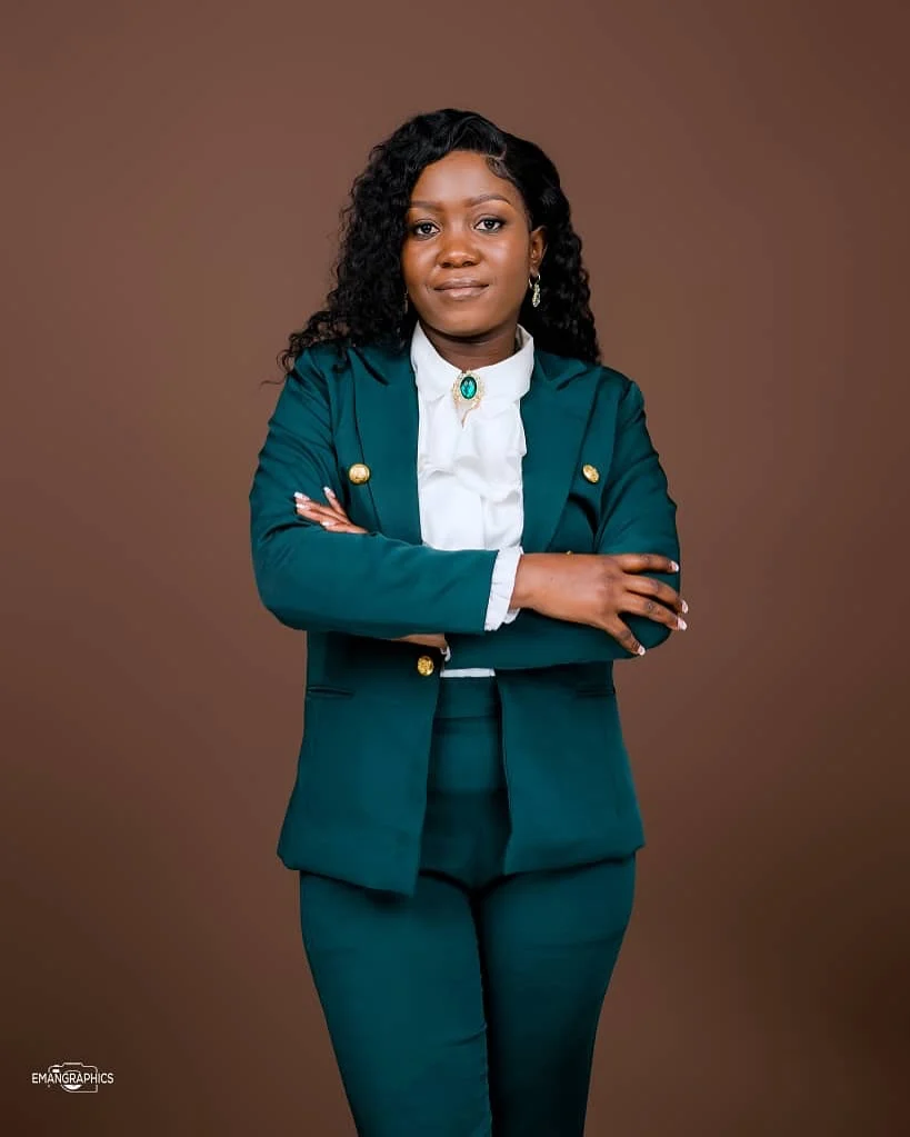 This emerald green suit offers a smart, polished, and professional aesthetic for any graduate stepping into a new chapter. The structured blazer with gold buttons brings a touch of refinement, while the white blouse underneath adds contrast and crispness.
