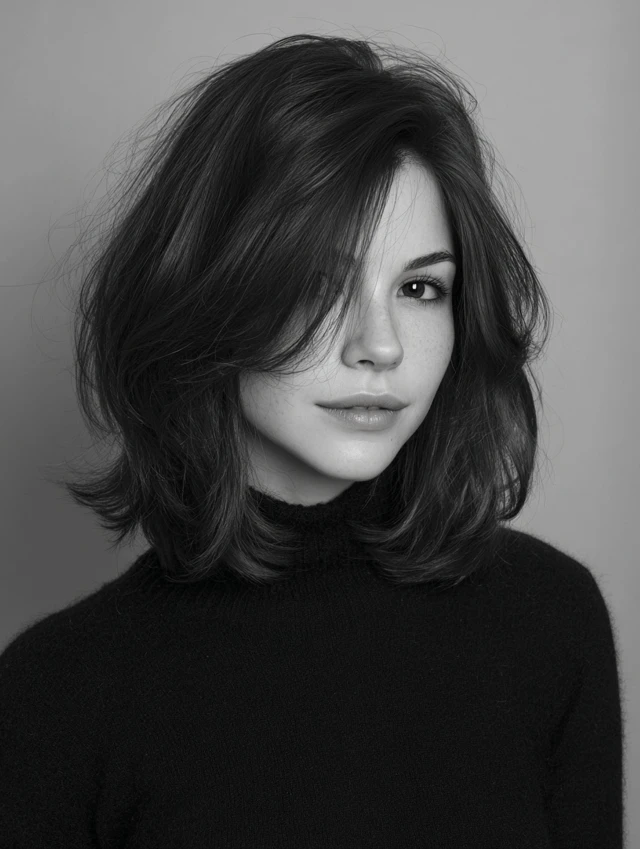 The classic kitty cut features soft layers with subtle cat-like points at the ends. It works well for oval, round, and heart-shaped faces by framing the cheeks and softening the jawline. Straight or slightly wavy hair responds best. The layers add volume and movement, creating a playful but balanced look.