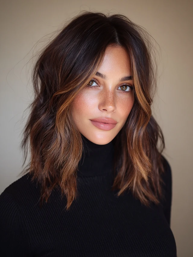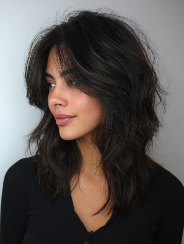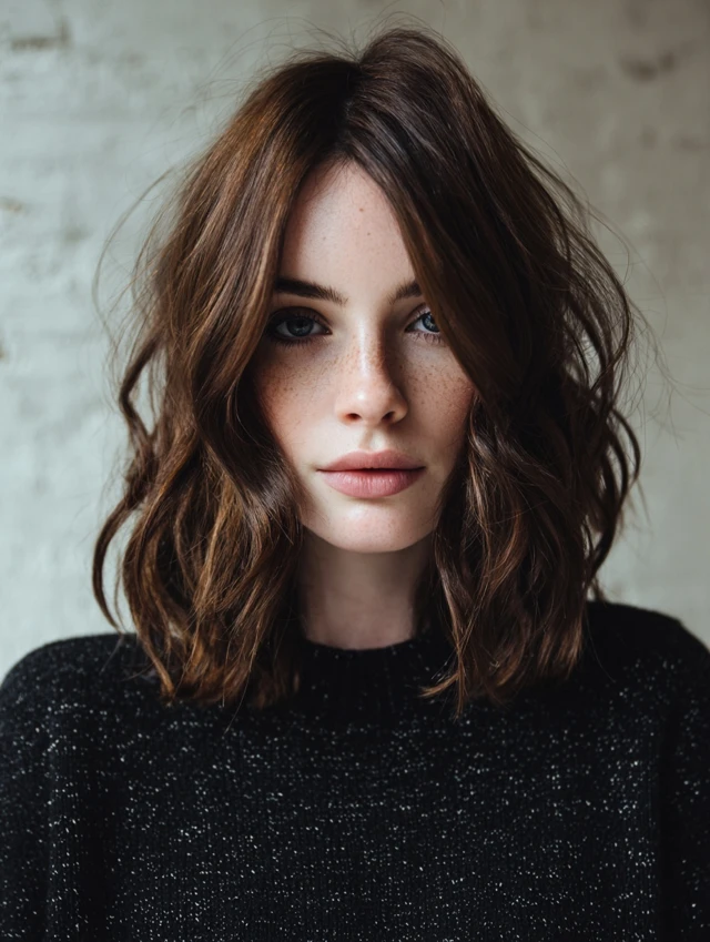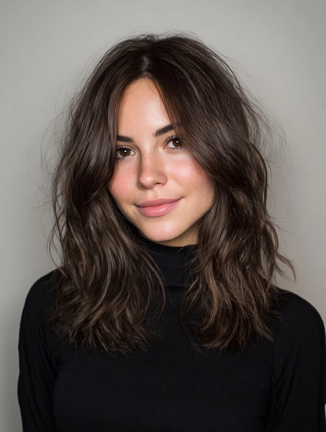 A wavy layered LOB adds texture and movement, making thick hair appear lighter and more dynamic. Layers prevent heaviness and enhance natural waves.