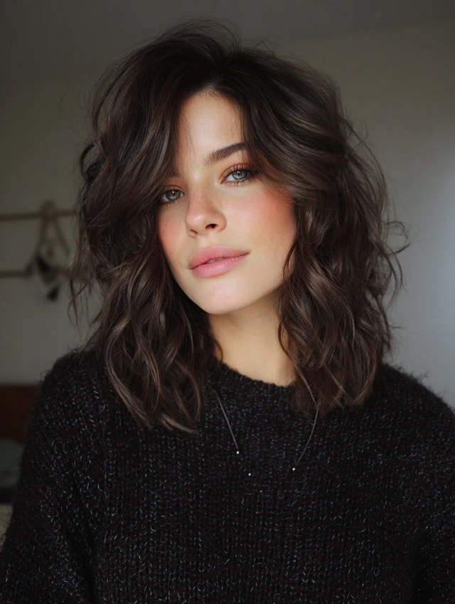 Oval and round faces benefit most. Works for thick wavy hair. Perfect for casual outings or weekend events. Use sea salt spray or curl cream, scrunch while air-drying, and finger-comb for soft, natural waves.