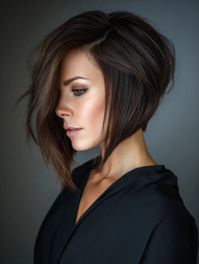 An angled LOB has slightly longer front pieces and a shorter back, creating a modern, flattering silhouette. Angles give thick hair shape and prevent it from looking boxy.