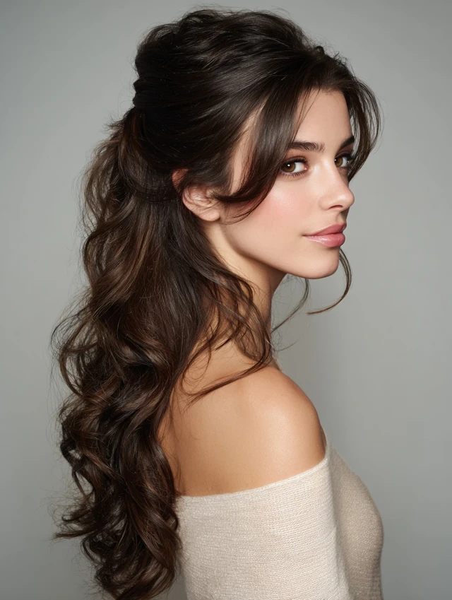 Half-up half-down hairstyles balance elegance and practicality. Pulling some hair back highlights facial symmetry while leaving volume cascading down. This style works for both daily wear and formal occasions.