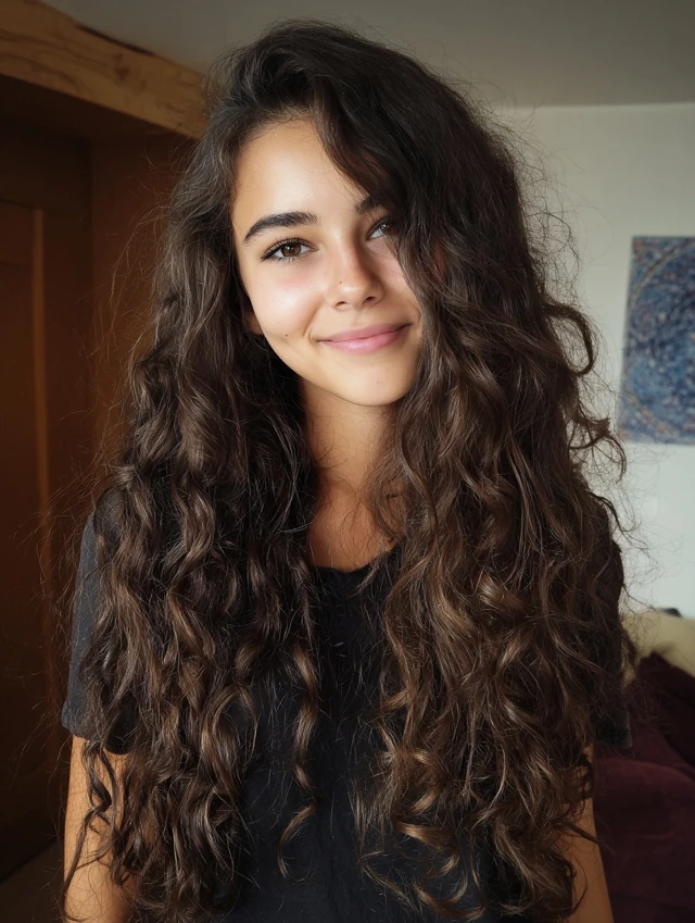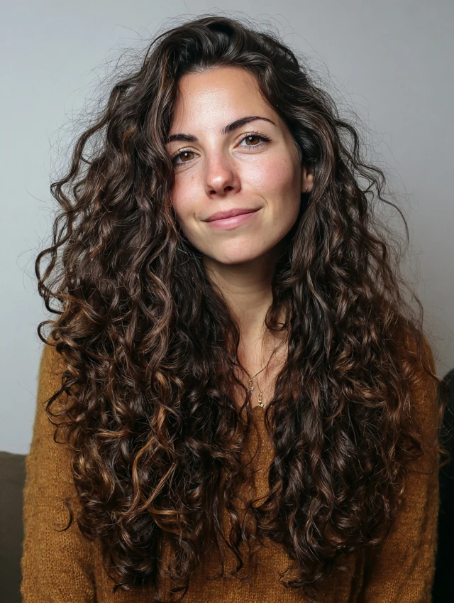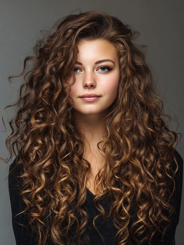 Long curly hairstyles give volume and personality to oval faces. Natural curls or defined curls add bounce while drawing attention to facial features. Curls soften the face and add a youthful, playful vibe.