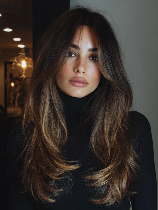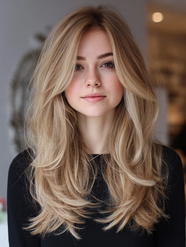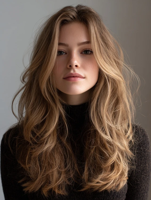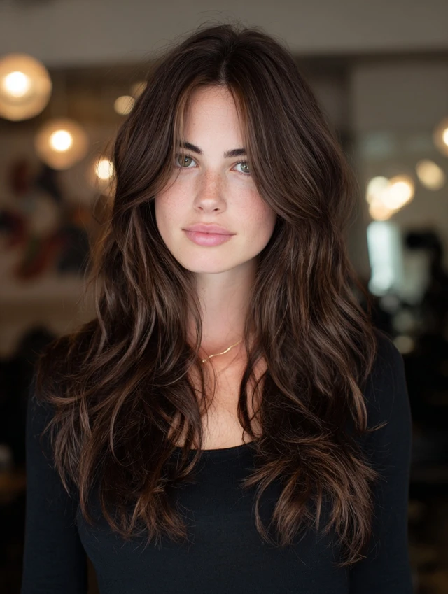 Long layered waves add movement and dimension while keeping the length intact. Layers around the face frame features and prevent hair from appearing flat or heavy. Soft waves add texture and volume naturally.