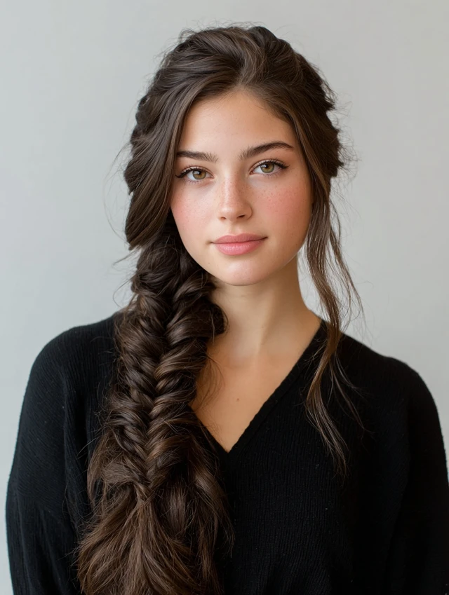 Oval and heart-shaped faces look best. Works for all hair textures with medium to thick density. Ideal for festivals, casual days, or formal events. Lightly mist hair for hold and reduce flyaways. Finish braid gently for softness.