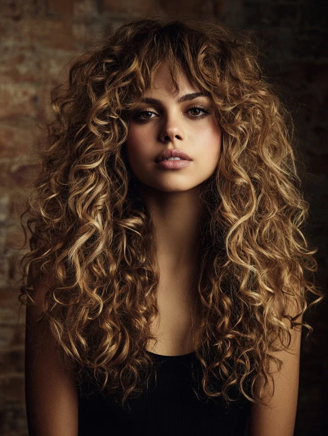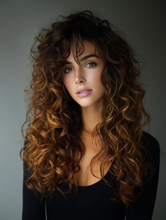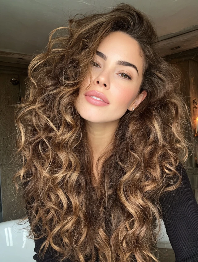 Long Curly Hair with Face-Framing Layers