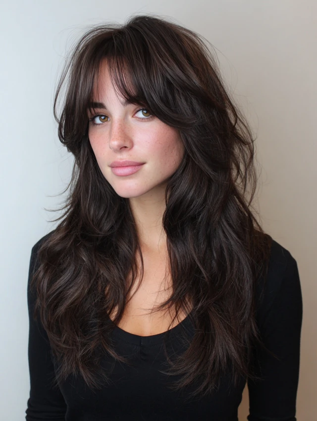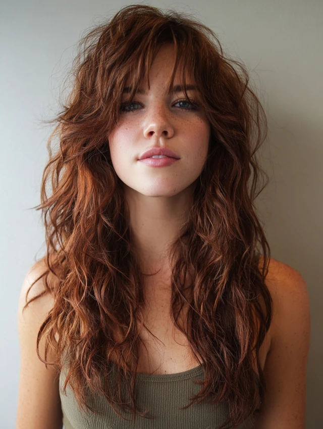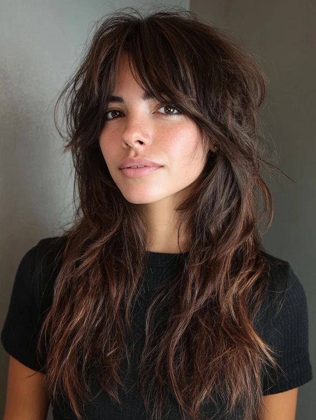 Long shag cuts are edgy, versatile, and perfect for adding volume and movement to long hair. Characterized by choppy layers, textured ends, and face-framing pieces, the shag cut transforms flat hair into a dynamic, lived-in style. This cut works well on straight, wavy, or curly textures, creating effortless bounce and a slightly undone, rock-chic vibe. Long shags suit women who want low-maintenance yet stylish hair that can be worn casual, sleek, or tousled.
