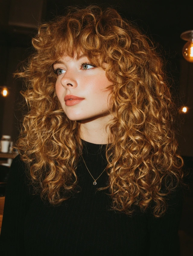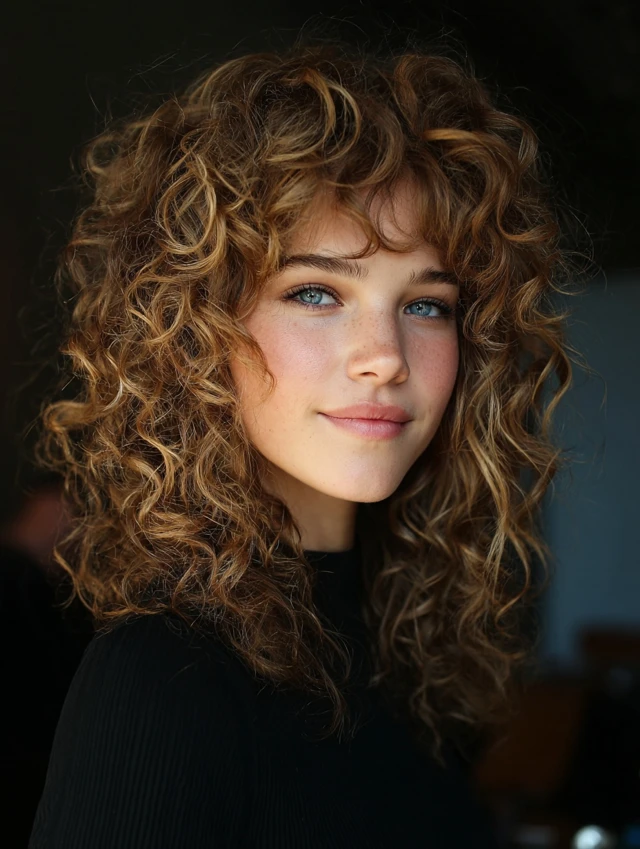 Oval and heart-shaped faces suit this style. Medium to coarse curls hold layers well. Perfect for casual, creative, or social occasions. Apply curl cream, diffuse or air-dry, and separate curls gently for maximum volume.