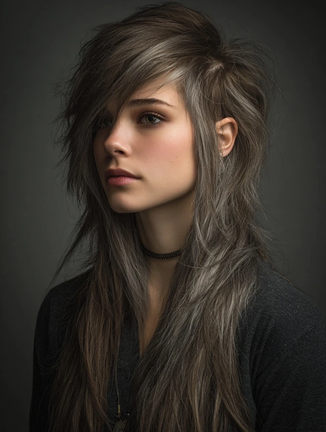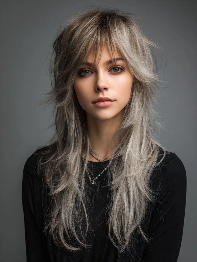 Long wolf haircuts are edgy, layered hairstyles that combine volume at the crown with flowing length at the ends. They work well for women who want a bold, modern look with movement and texture. This haircut suits medium to thick hair and is versatile for straight, wavy, or slightly curly textures. Long wolf cuts flatter oval, round, and heart-shaped faces while giving a youthful, dynamic silhouette. They are perfect for casual, professional, or social occasions and offer a low- to medium-maintenance styling routine.