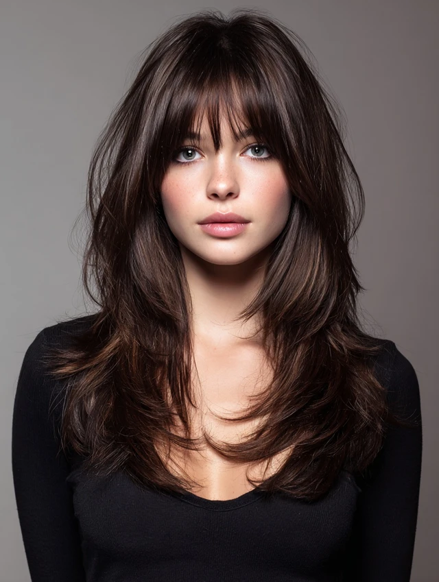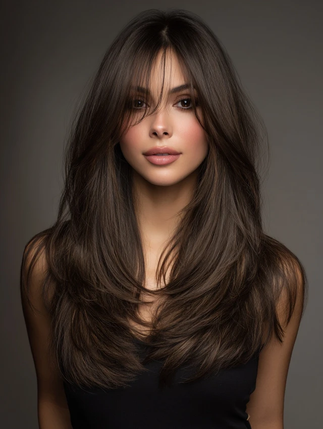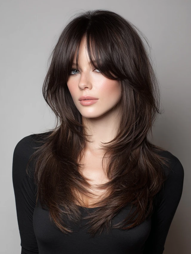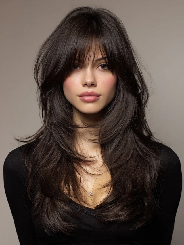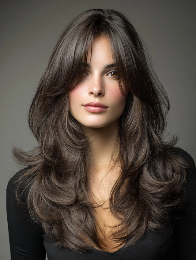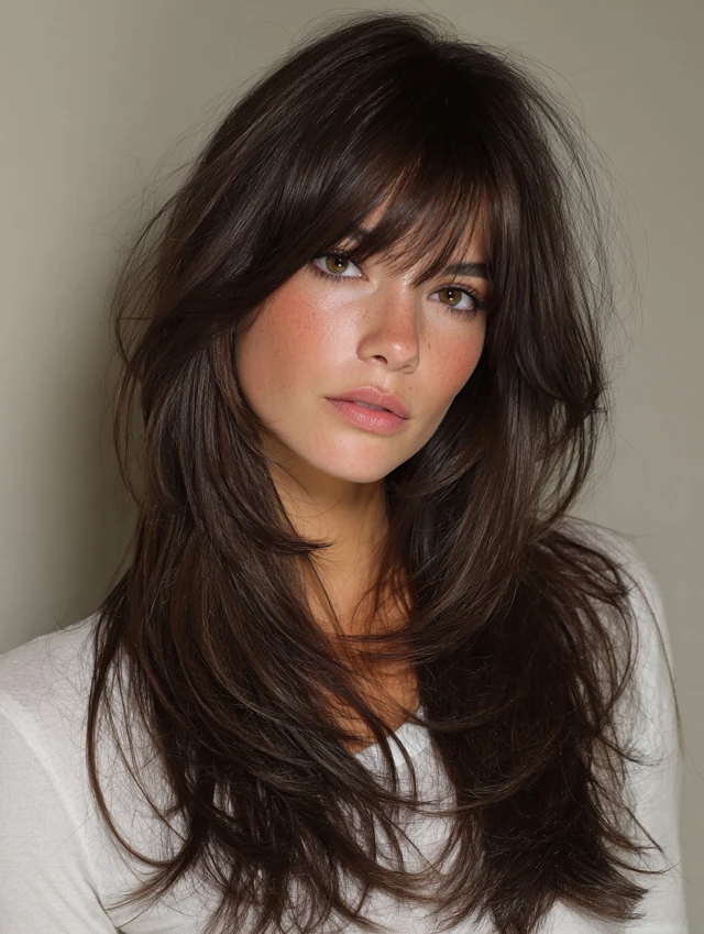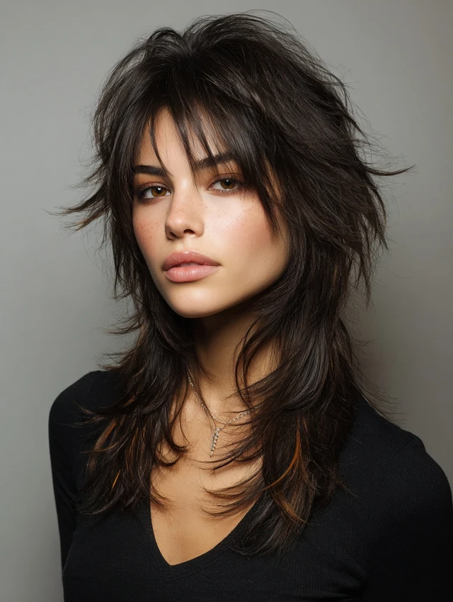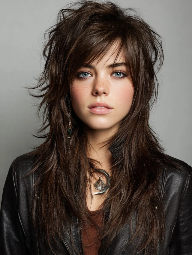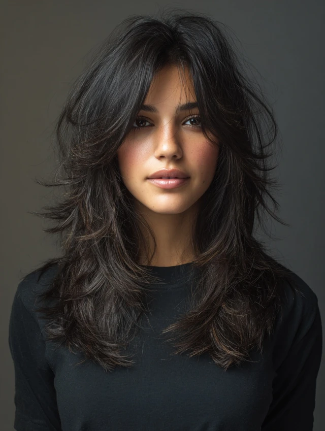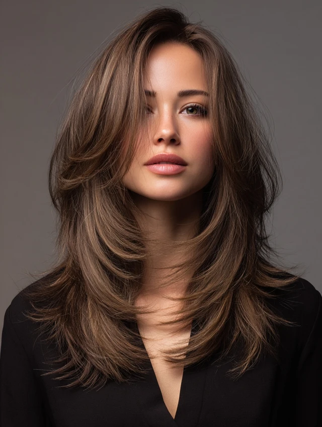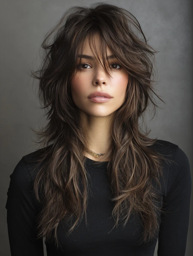 This style emphasizes long, cascading layers with shorter, choppy top layers for movement. Works well for oval and heart-shaped faces, softening the jawline while keeping volume at the crown. Medium to thick hair responds best.