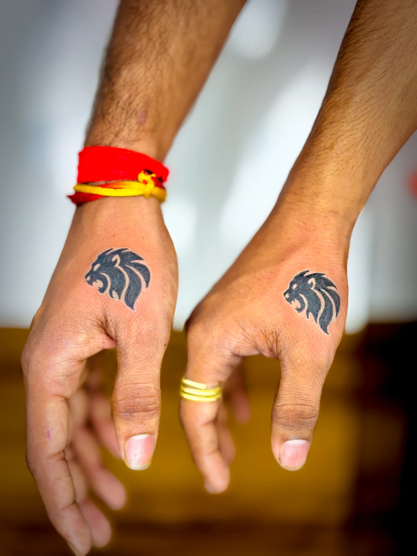 Matching Lion Head Tattoos on Hands