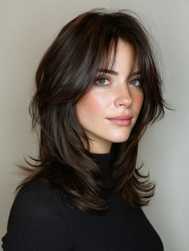 Medium shag haircuts work because the layers add natural lift and texture, keeping hair from looking flat or heavy. Crown layers enhance volume while feathered ends create effortless movement.