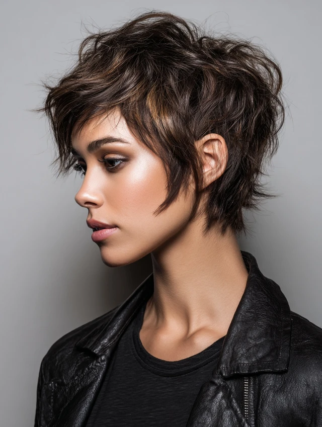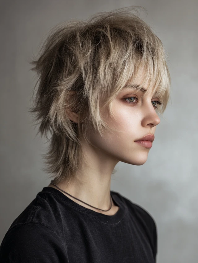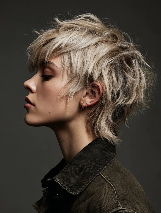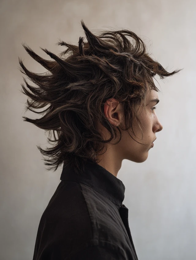 This style emphasizes jagged, uneven layers throughout, creating an edgy, dynamic look. Works best on thick or medium-density hair. Oval, square, and heart-shaped faces benefit from crown lift and natural movement.