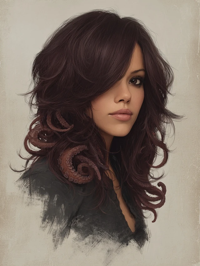 The long octopus haircut preserves length while incorporating jagged, layered ends and subtle points. It works well for thick, wavy, or straight hair. Oval, round, and heart-shaped faces benefit from the layered flow and volume at the crown.