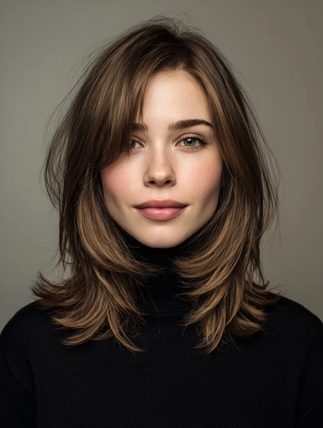 This style adds layers around the face to soften features and highlight cheekbones. It works well for oval, round, and heart-shaped faces. Medium to thick hair holds the layers naturally, while fine hair may need a light volumizing product.