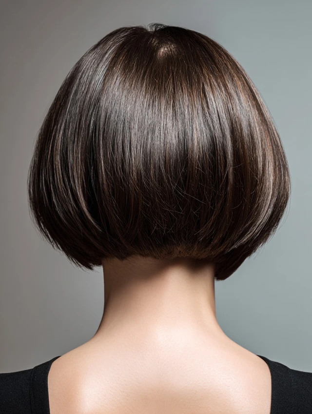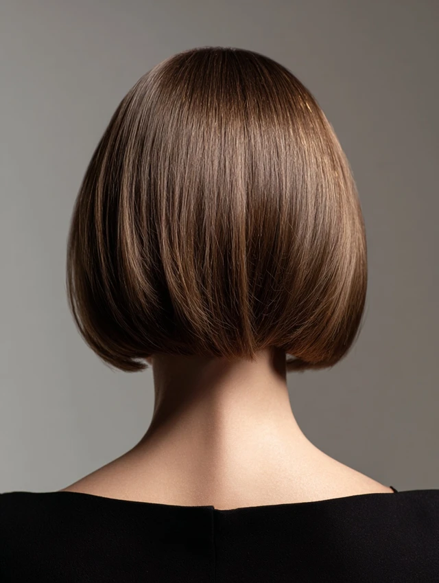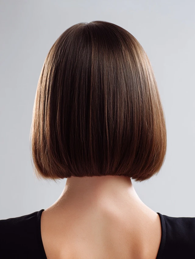 Styling is flexible: smooth with a round brush, blow-dry for volume, or lightly straighten ends. Ideal for professional, social, and semi-formal occasions. Trims every 6–8 weeks preserve the inverted shape and sleek finish.