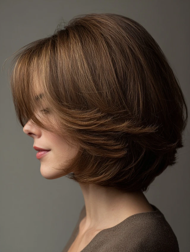 Adding subtle layers softens the bob while keeping it structured. Works for oval, square, and heart-shaped faces. Medium to thick hair responds best, as layers add movement without losing polish.