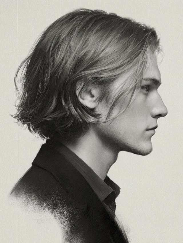 A deep side part adds elegance and frames the face beautifully. Works well for oval, round, and heart-shaped faces. Straight or slightly wavy hair holds the clean lines naturally.