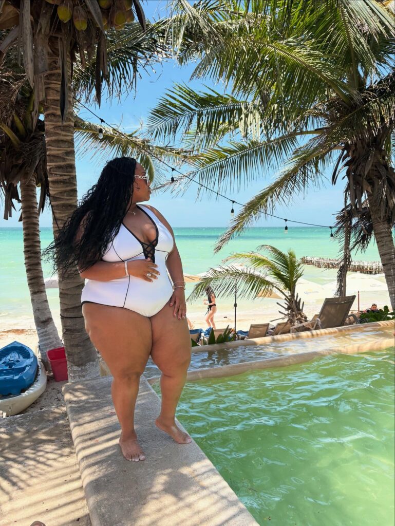Designed to stand out by the beach or pool, this swimsuit is both stylish and supportive. It’s perfect for soaking up sun while serving strong baddie energy. Whether lounging or dipping in the water, this look delivers swimwear confidence with a fierce, fashion-forward edge.