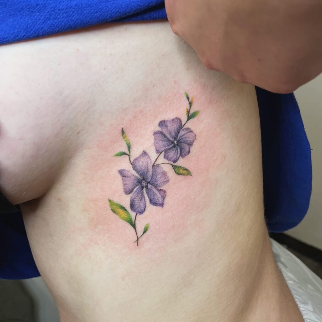 Delicate Purple Flower Tattoo on Ribcage