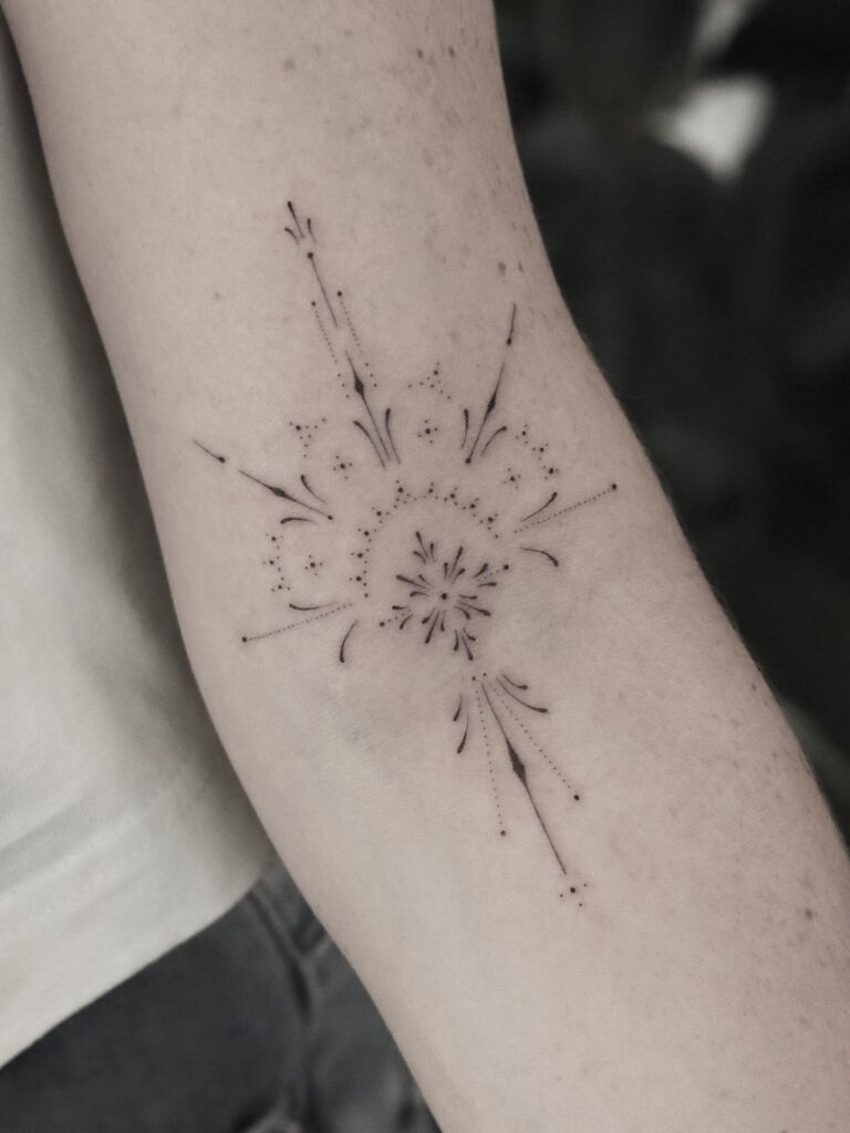 It’s a captivating tattoo that combines nature’s softness with celestial energy in perfect harmony.