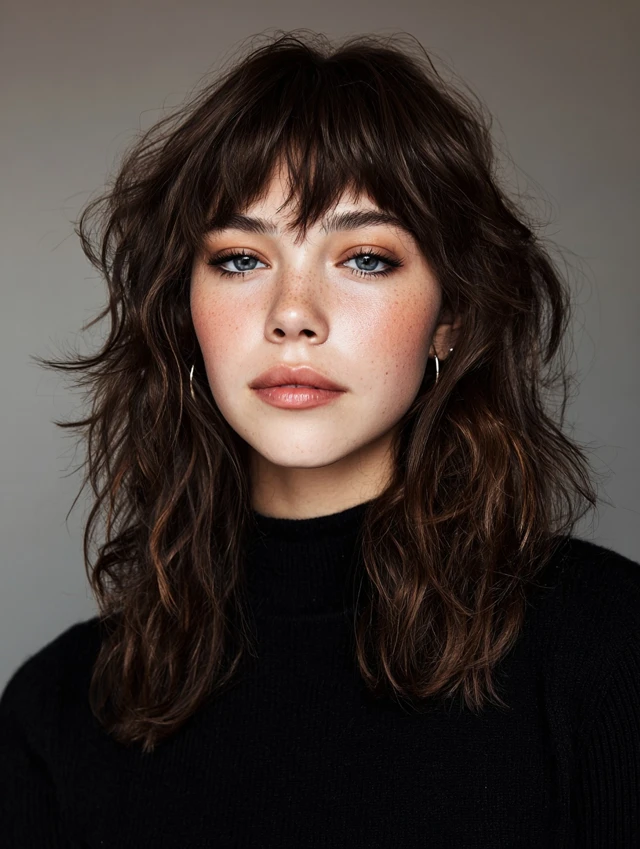Shaggy wolf cuts with bangs work because they combine texture, volume, and edge while softening the face. They suit multiple hair types and lifestyles.