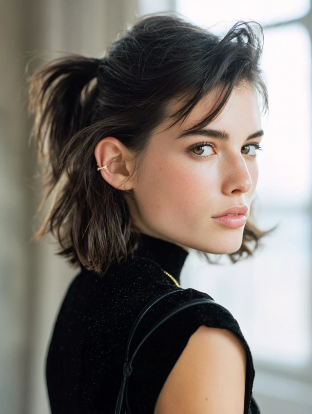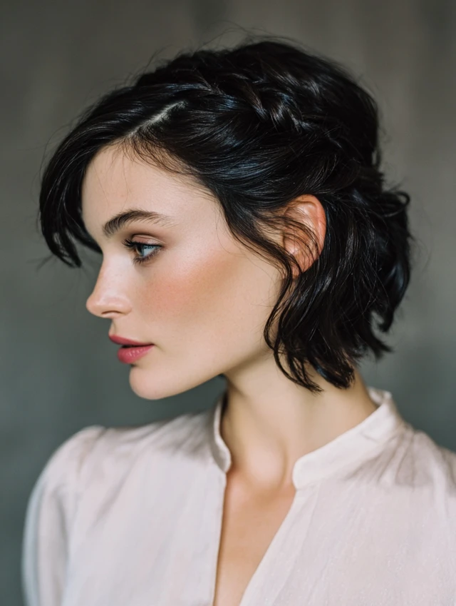 This hairstyle works for oval, round, and heart-shaped faces. Ideal for short straight or wavy hair. Styling requires minimal effort and can be dressed up with accessories or kept casual for everyday wear.